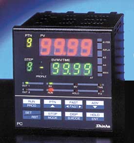 Shinko 1/4 DIN High Performance Programmable Controller PC-900 Series features a maximum of 10 patterns with 10 segments per pattern which can be stored in memory. Each pattern can be linked together so that it is possible to have a program with a maximum of 100 segments.