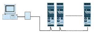 It is possible to measure and control ranging from 1 point to a maximum of 31 points using serial communication (RS-485). It is very easy to connect between plural DCl-33As, between communication converter and DCL-33A using communication cable CPP and CPM (sold separately).